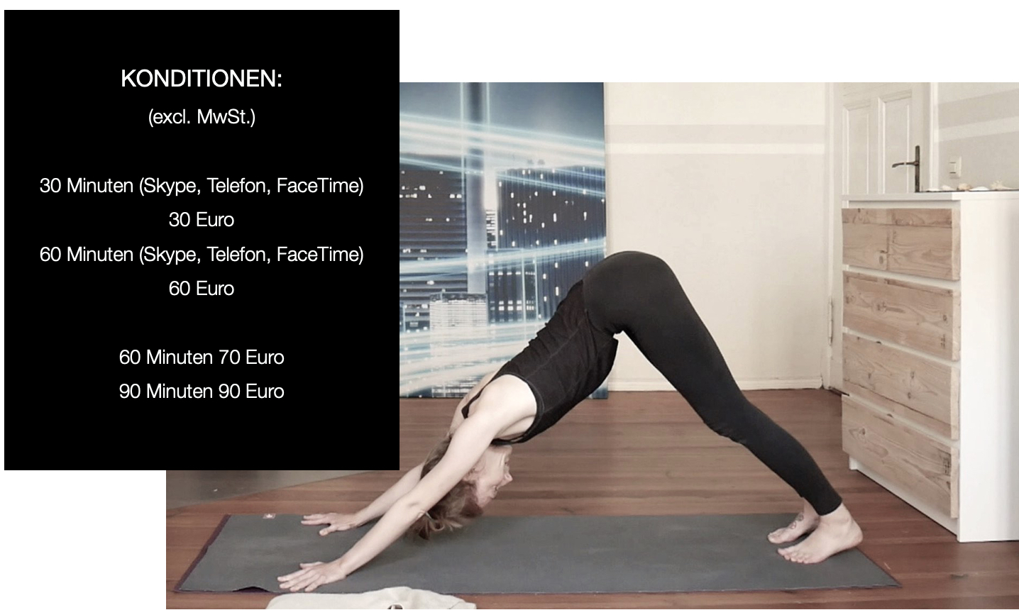 In einem Vorgespräch möchte ich anhand von Fragen herausfinden, wie dich der Yoga in deinem Leben bestmöglich unterstützen kann. Anhand deiner Hinweise und Wünsche erstelle ich eine für dich passende Einheit – diese kann 10 bis 60 Minuten betragen.